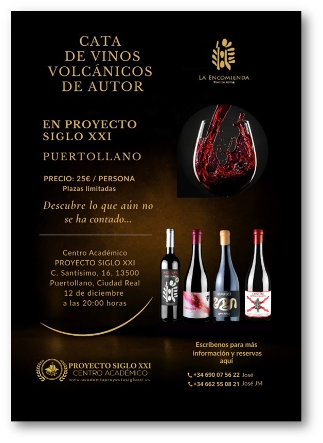 Vinos la Encomienda organizará una exclusiva Cata de Vinos Volcánicos de Autor, una experiencia enogastronómica única que nos permitirá profundizar en la personalidad, expresividad y singularidad de los vinos nacidos de tierras volcánicas.