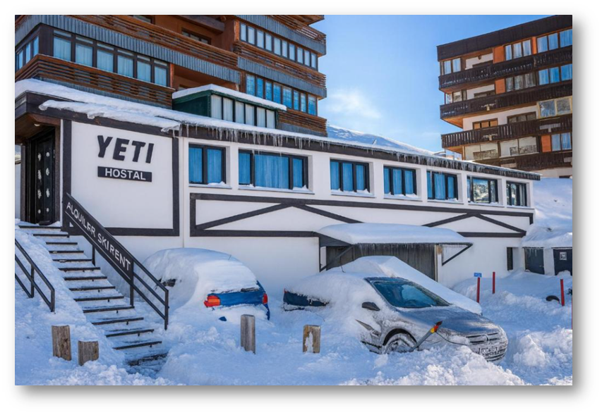 Nos alojaremos en el Hostal Yeti, un acogedor establecimiento situado en pleno corazón de Sierra Nevada, a tan solo unos metros del telesilla Parador y con acceso directo a la Pista Maribel.