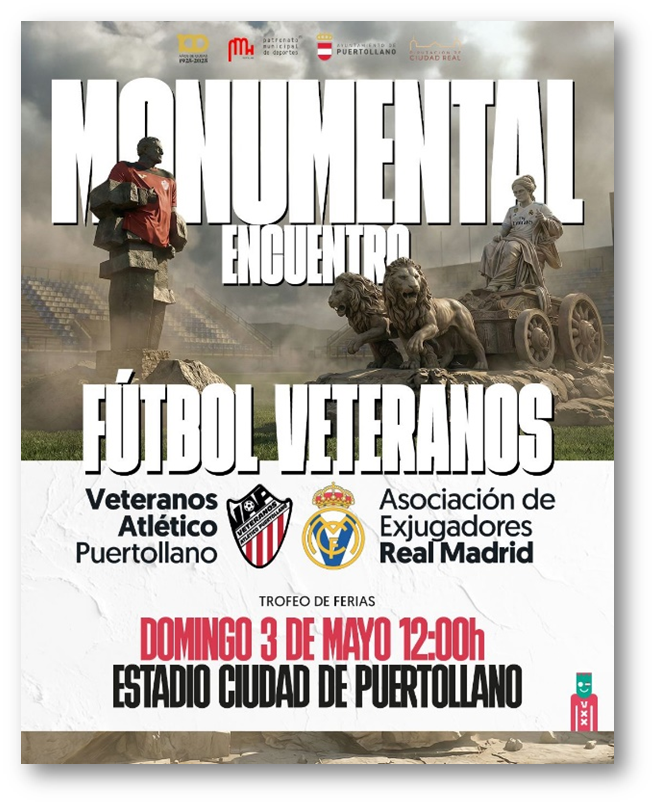 El próximo domingo 3 de mayo, a las 12:00 horas, el Estadio Ciudad de Puertollano (El Cerrú) será el escenario de un atractivo y especial partido que enfrentará a los Veteranos del Atlético Puertollano y a la Asociación de ex jugadores del Real Madrid.